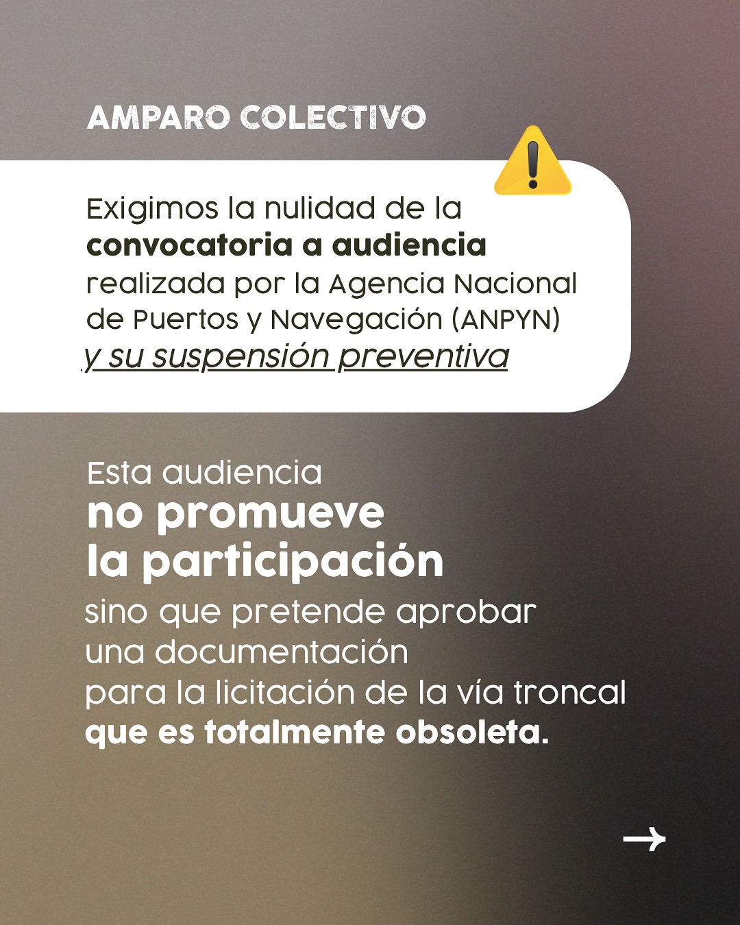 El Observatorio del Derecho a la Ciudad, Fundación CAUCE y la Asociación Civil Sin Fines de Lucro Para todos porque es para todos presentaron un amparo colectivo ambiental solicitando la nulidad de la convocatoria a la Audiencia Pública sobre el “Informe de Gestión y Evaluación Ambiental” de la Hidrovía Paraná–Paraguay.