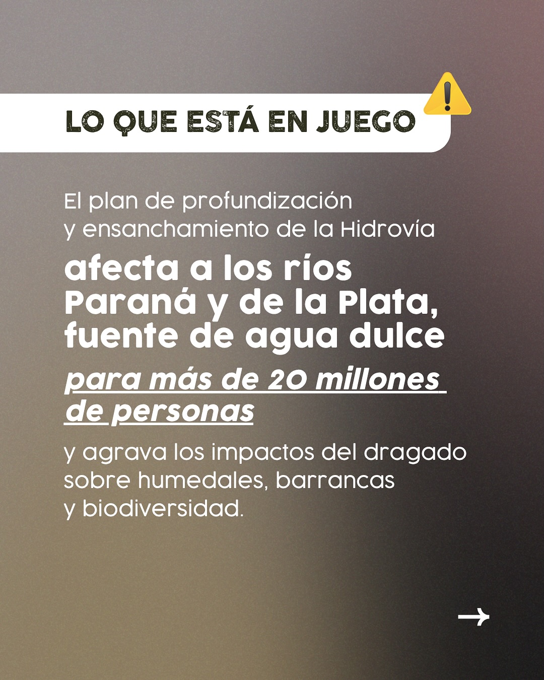 Los ríos Paraná y de la Plata son la fuente de agua dulce para aproximadamente 20 millones de personas. Esto vincula directamente el proyecto con el derecho humano fundamental al acceso al agua potable y saneamiento. Por eso, la falta de información y participación adecuada priva a la ciudadanía del control social sobre un proyecto que tiene «impactos transgeneracionales».