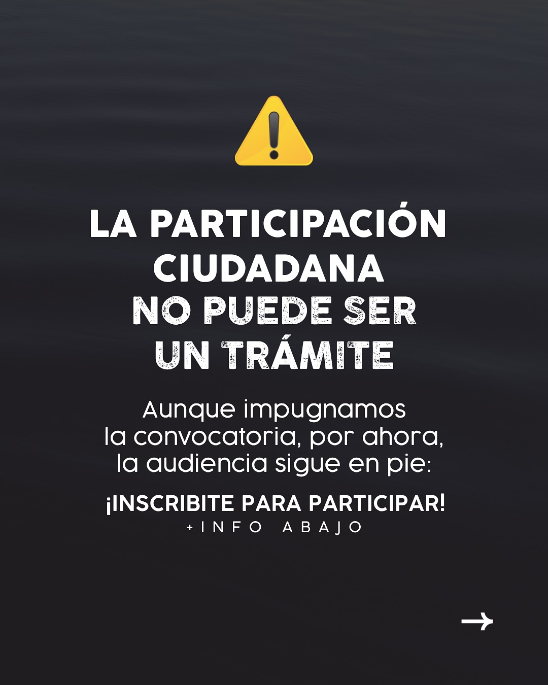 Aun así, la audiencia sigue en pie. Desde las organizaciones invitamos a la ciudadanía a inscribirse y participar siguiendo este enlace, para exigir: